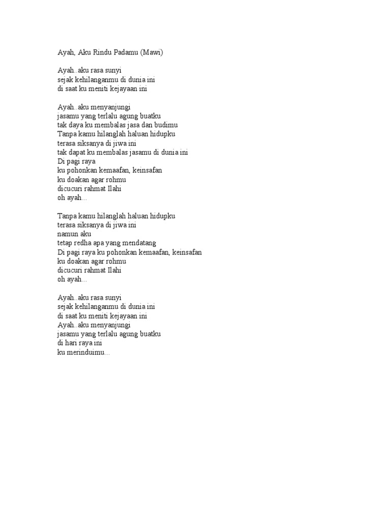 Ruang Belajar Siswa Kelas 6 Lirik Lagu Ibu Aku Rindu