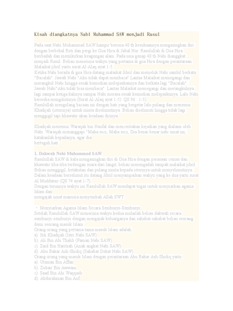 Kisah Diangkatnya Nabi Muhammad Saw Menjadi Rasul
