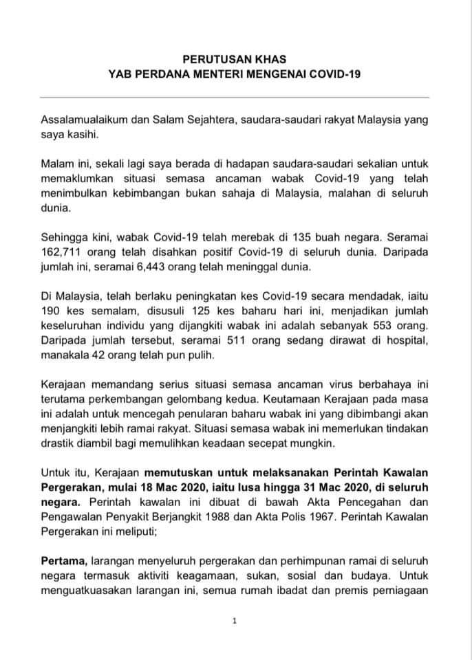 Imigresen Malaysia On Twitter 16 Mac 2020 Perutusan Khas Yab Perdana Menteri Mengenai Covid 19 Sumber Pejabat Perdana Menteri Https T Co Pxcjeweukv Https T Co Wzrsddt8fw
