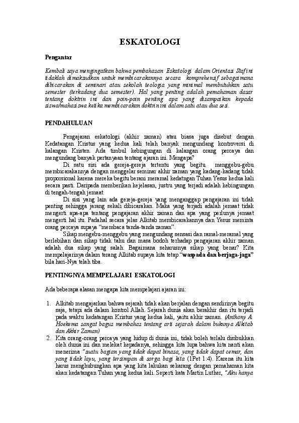 Eskatologi Radot Harianja Academia Edu