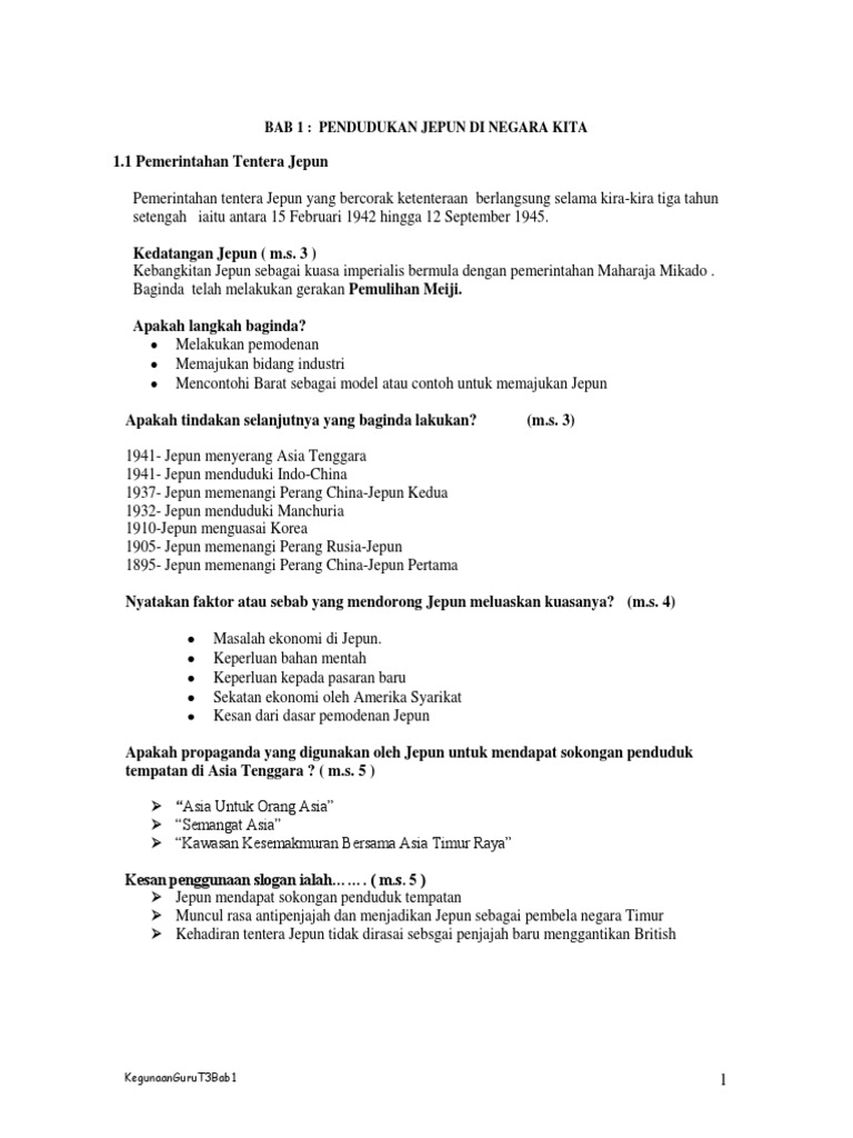 Jawaban Bab1 T3 Doc Bab 1 Pendudukan Jepun Di Negara Kita Bab 1 Pendudukan Jepun Di Negara Kita Tema Tajuk A Pemerintahan Jepun I Kedatangan Jepun Course Hero