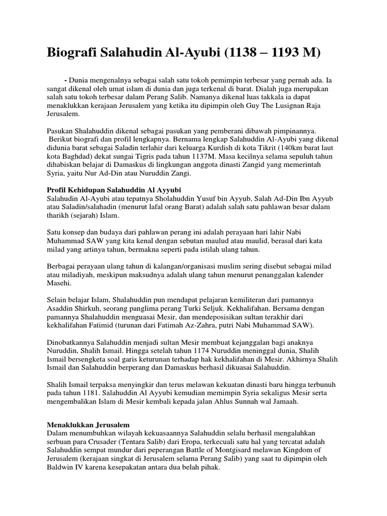 Biografi Salahudin Al Ayubi 1138 1193 M Rumah Sedekah