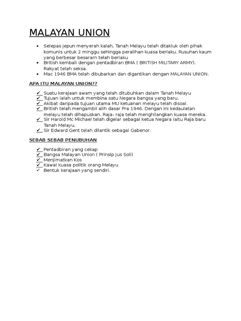 Doc Bab 2 Malayan Union Dan Persekutuan Tanah Melayu Nazhif Wan Yusoff Academia Edu