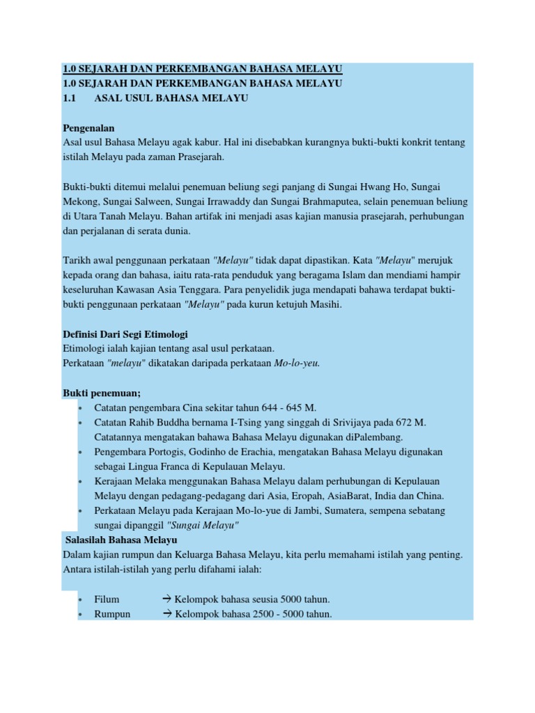 Asal Usul Bahasa Melayu Pdf Document