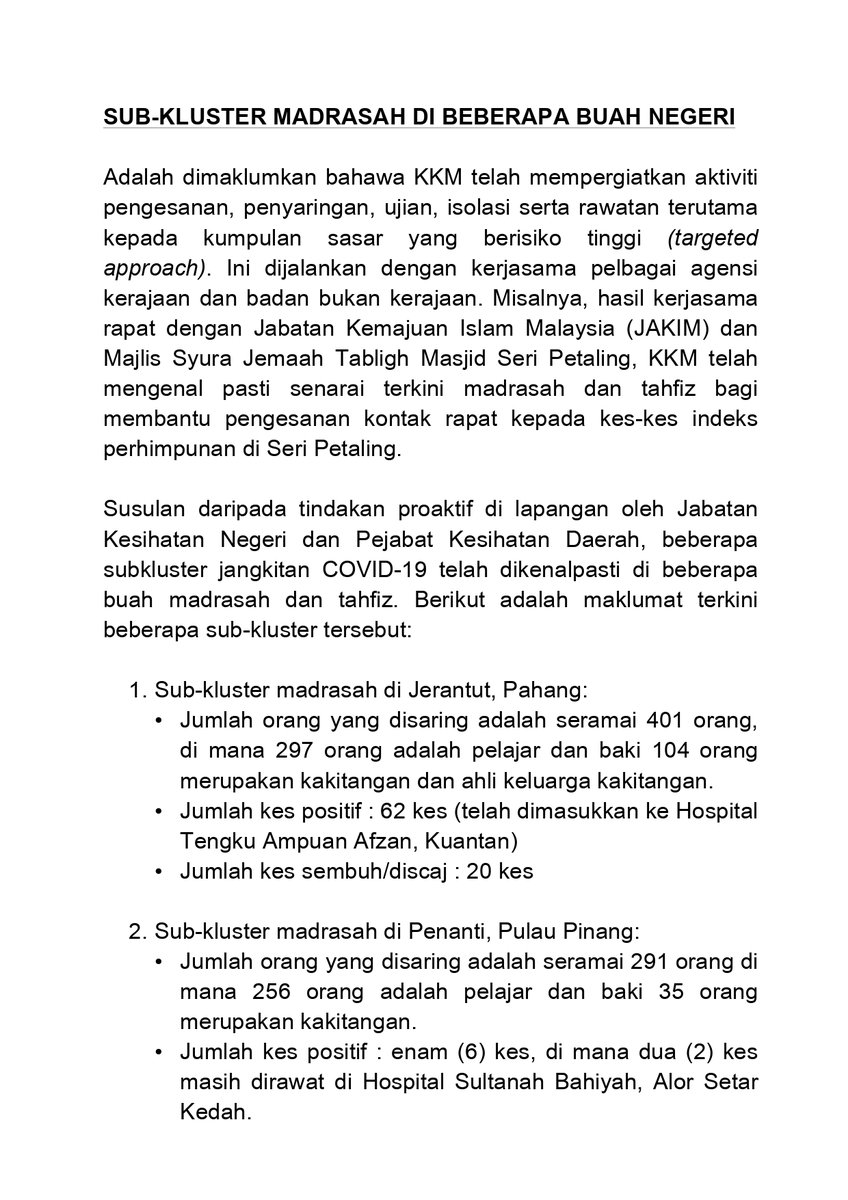 Bernama Tv On Twitter Covid 19 Sub Kluster Madrasah Di Beberapa Buah Negeri Sub Kluster Madrasah Di Jerantut Pahang Sub Kluster Madrasah Di Penanti Pulau Pinang Sub Kluster Madrasah Di Sungai