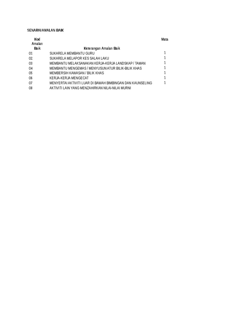 Senarai 40 Nilai Murni Pengajaran Amalan Baik Doc